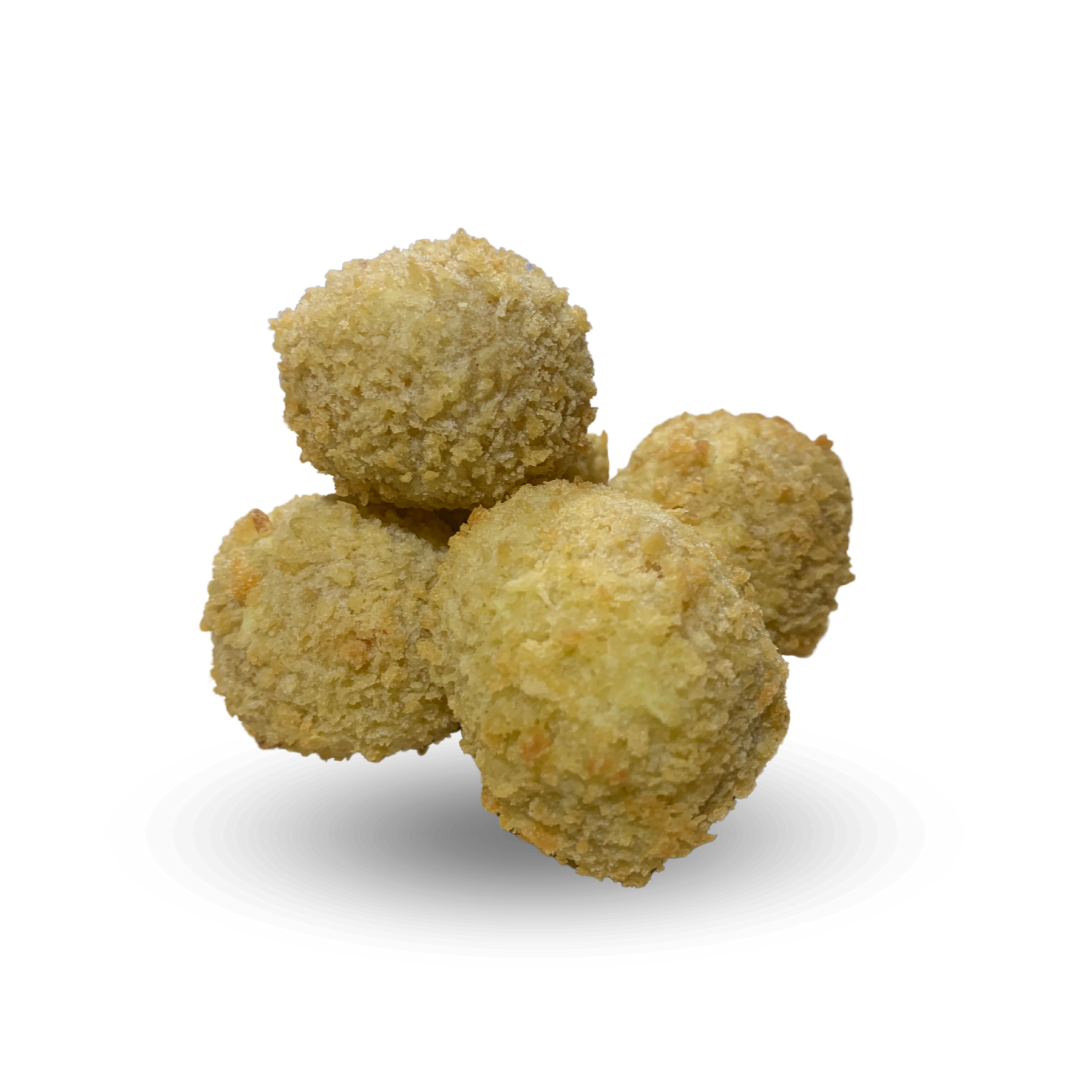 5 bolitas de Mixtura de verduras y salmón sulfritos y apanado en panko.